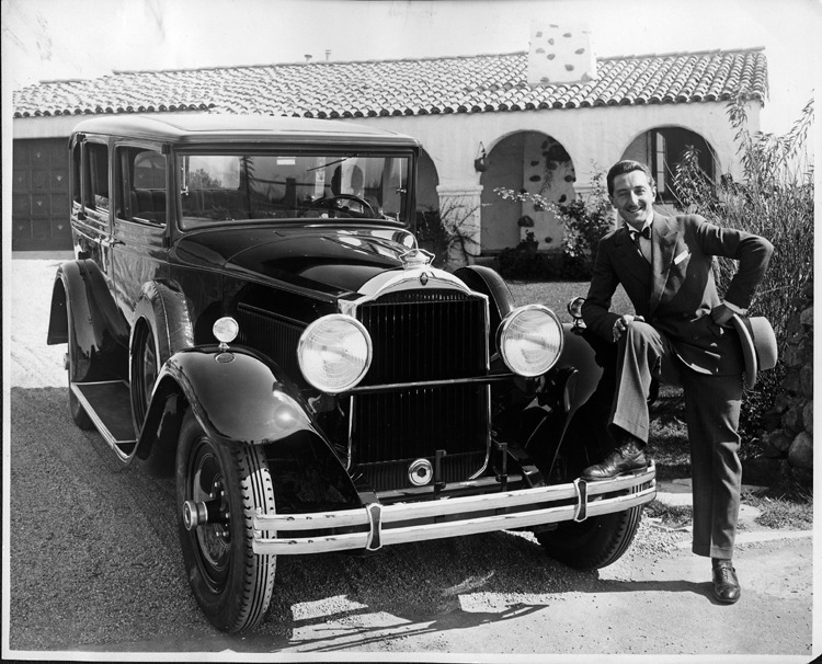 8x10 black and white Packard Co. file photograph of a 1930 Packard front view, parked in driveway, in front of house, owner Benito Corona standing at front of car. Inscribed on photo back: 1930 Packard standard eight, model 733, seventh series eight, 8-cylinder, 90-horsepower, 134.5-inch wheelbase, 7-person sedan (body type #404), Benito Corona.