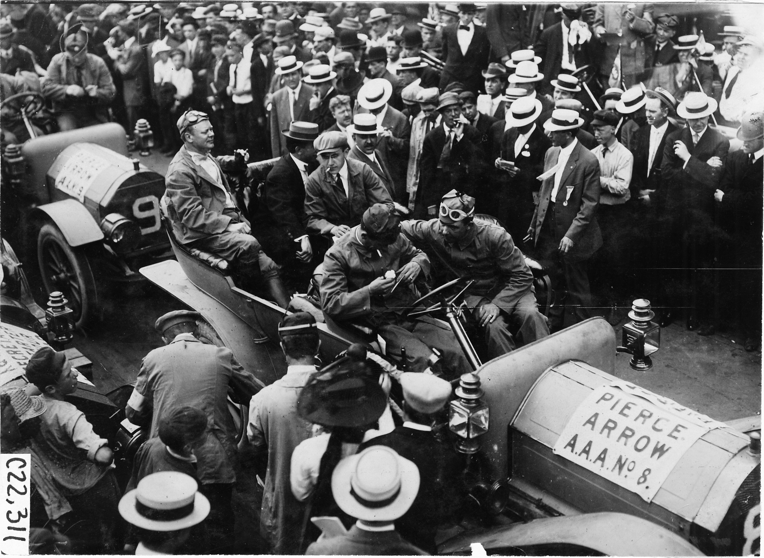 F.S .Day in Pierce-Arrow at start of the 1909 Glidden Tour, Detroit, Mich.