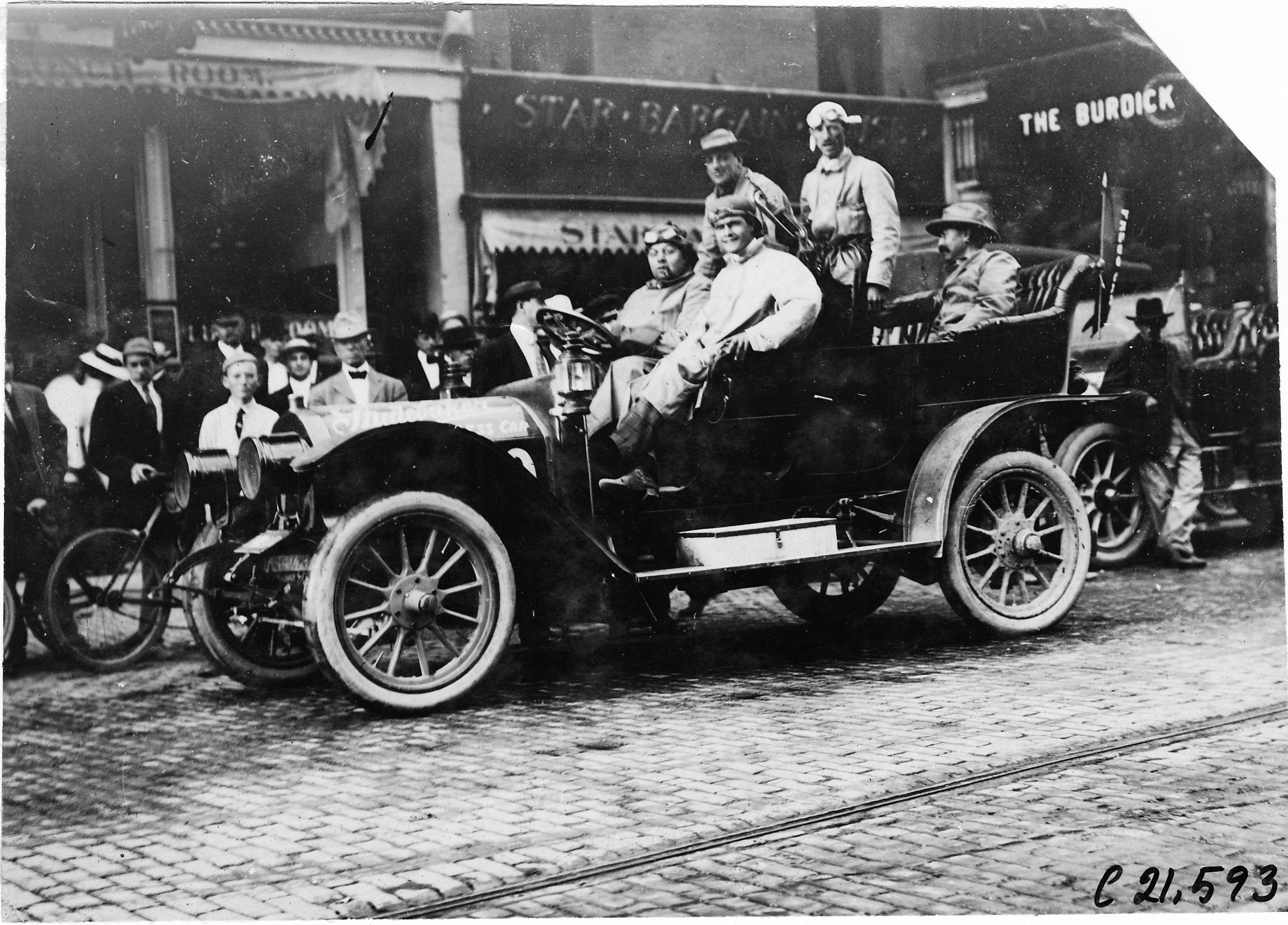 Studebaker press car arriving in Kalamazoo, Mich., 1909 Glidden Tour