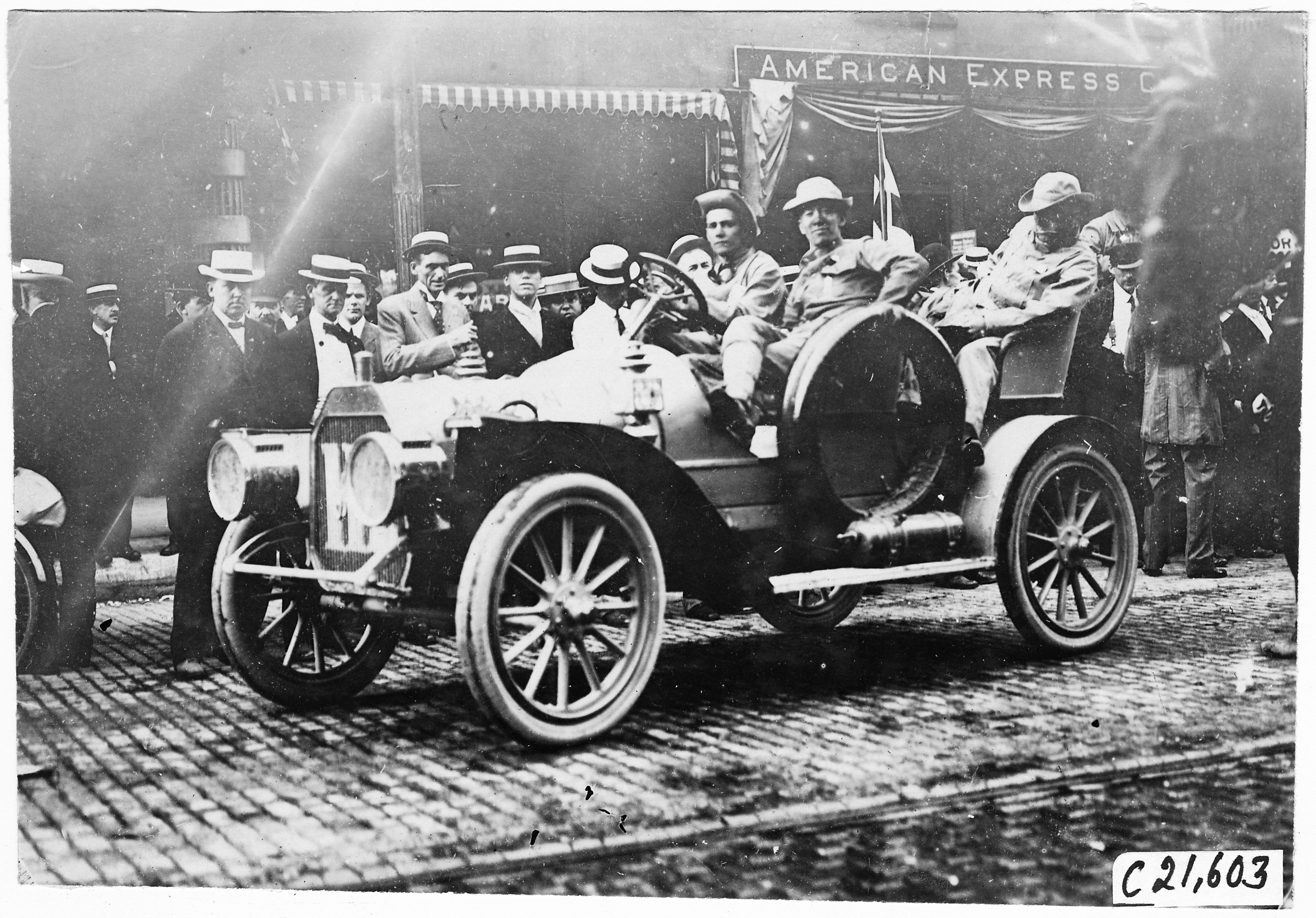 Mason car arriving in Kalamazoo, Mich., 1909 Glidden Tour