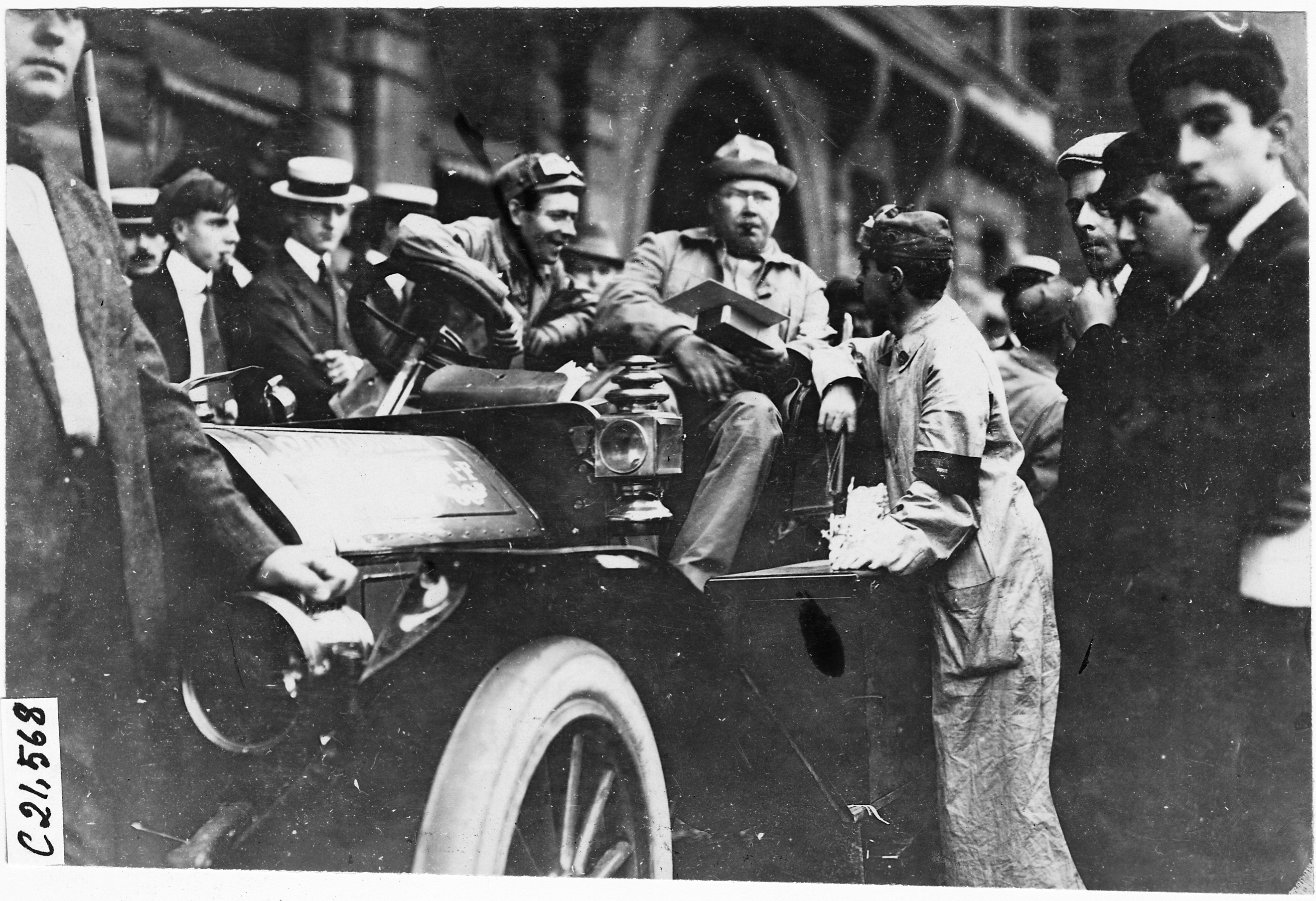 Studebaker press car checking in at Chicago, Ill., at the 1909 Glidden Tour