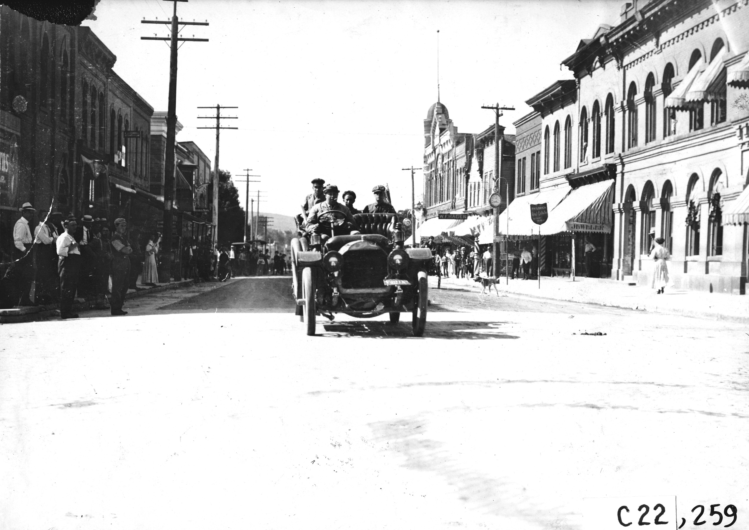 Studebaker press car on city street in Baraboo, Wis., 1909 Glidden Tour