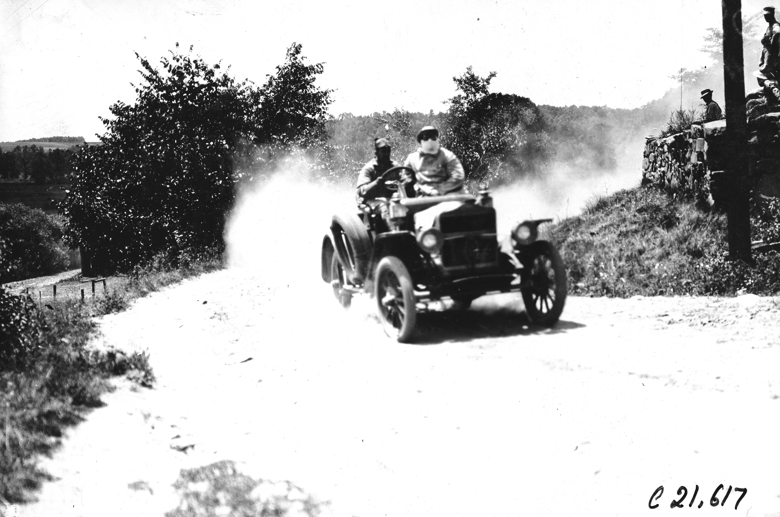 Goldthwaite in Maxwell car on the road to Elroy, Wis., 1909 Glidden Tour