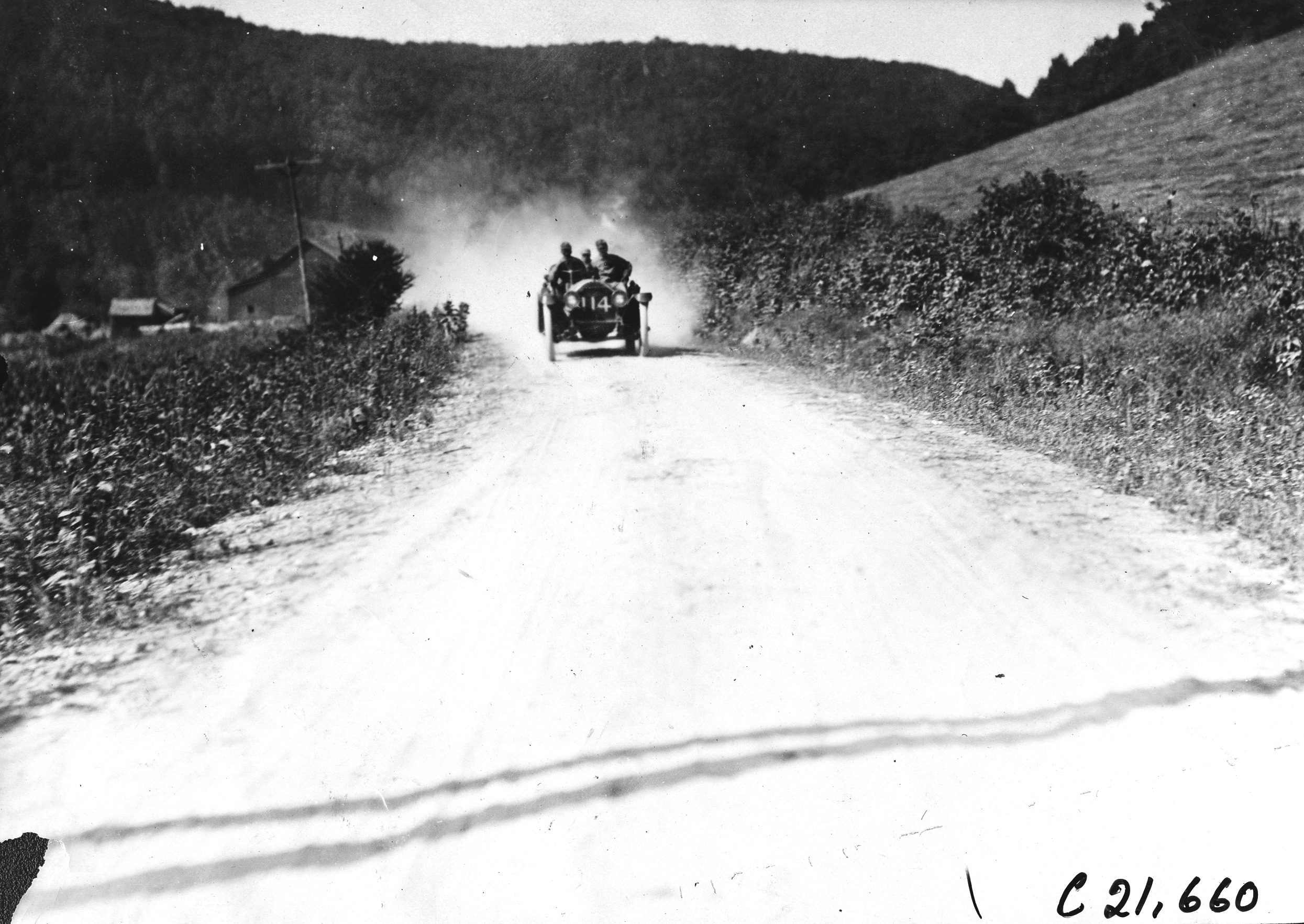 Lexington car going through Pleasant Valley, Minn., 1909 Glidden Tour