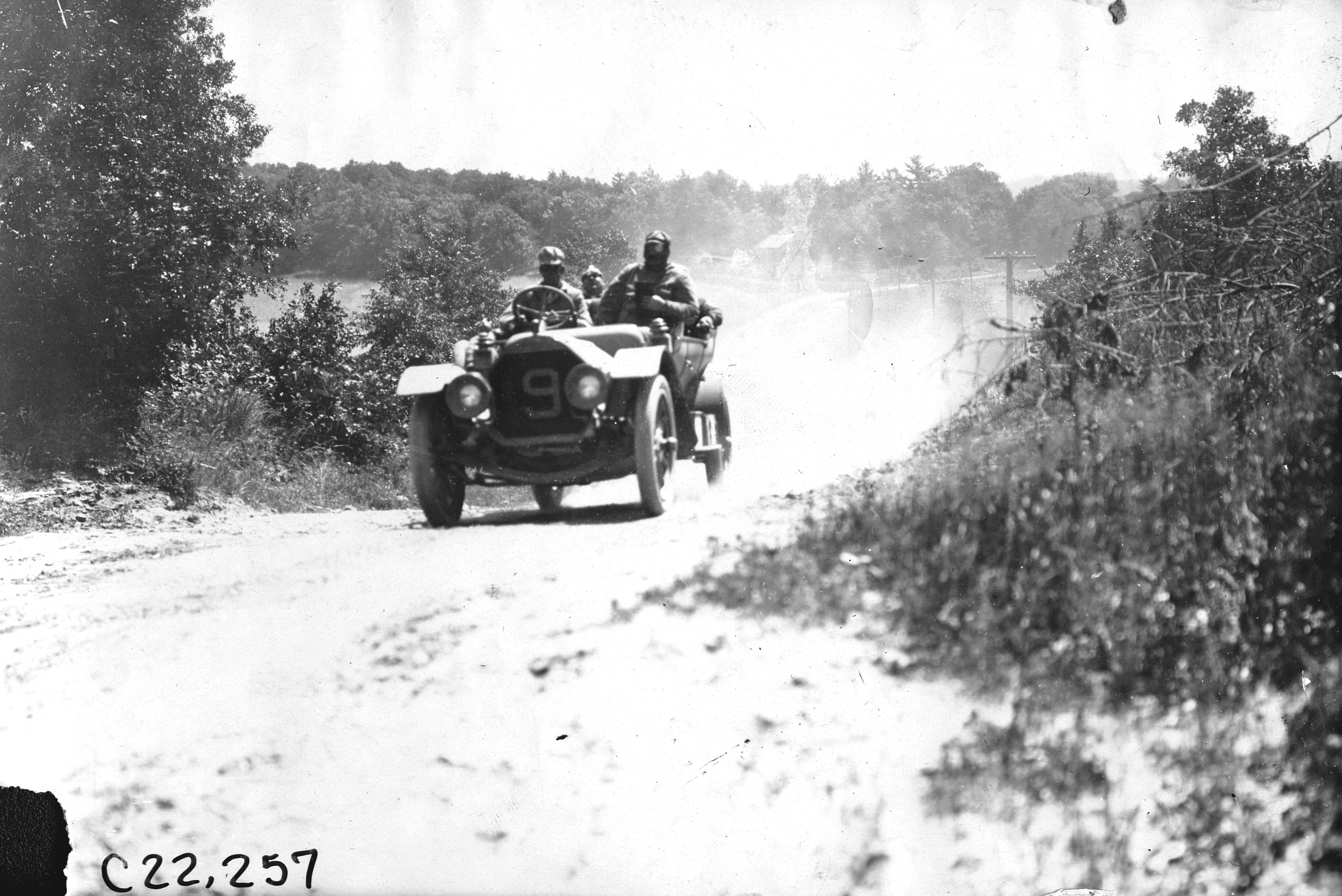 Pierce car climbing a hill at the 1909 Glidden Tour