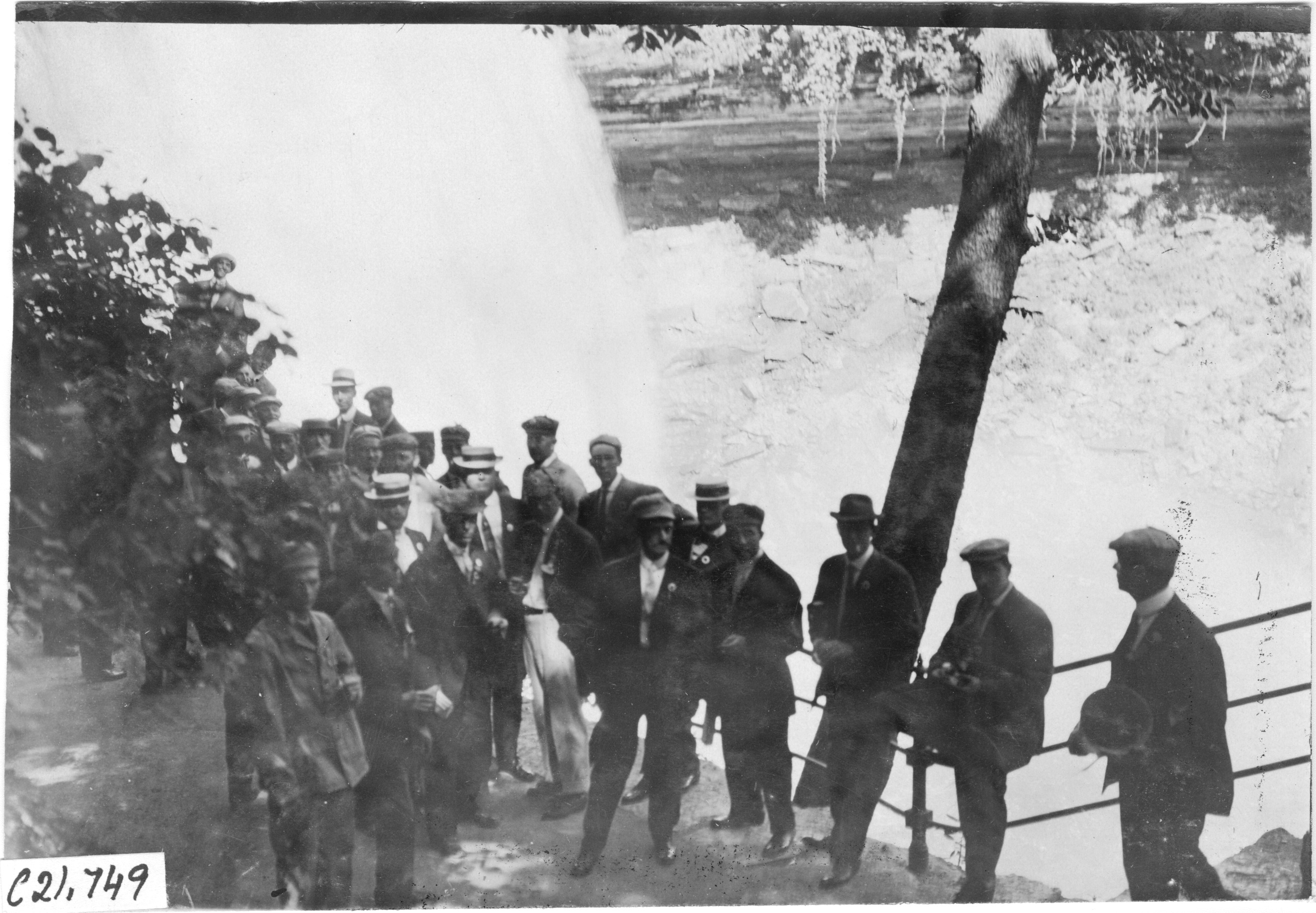 Glidden tourists at Minnehaha Falls, at 1909 Glidden Tour