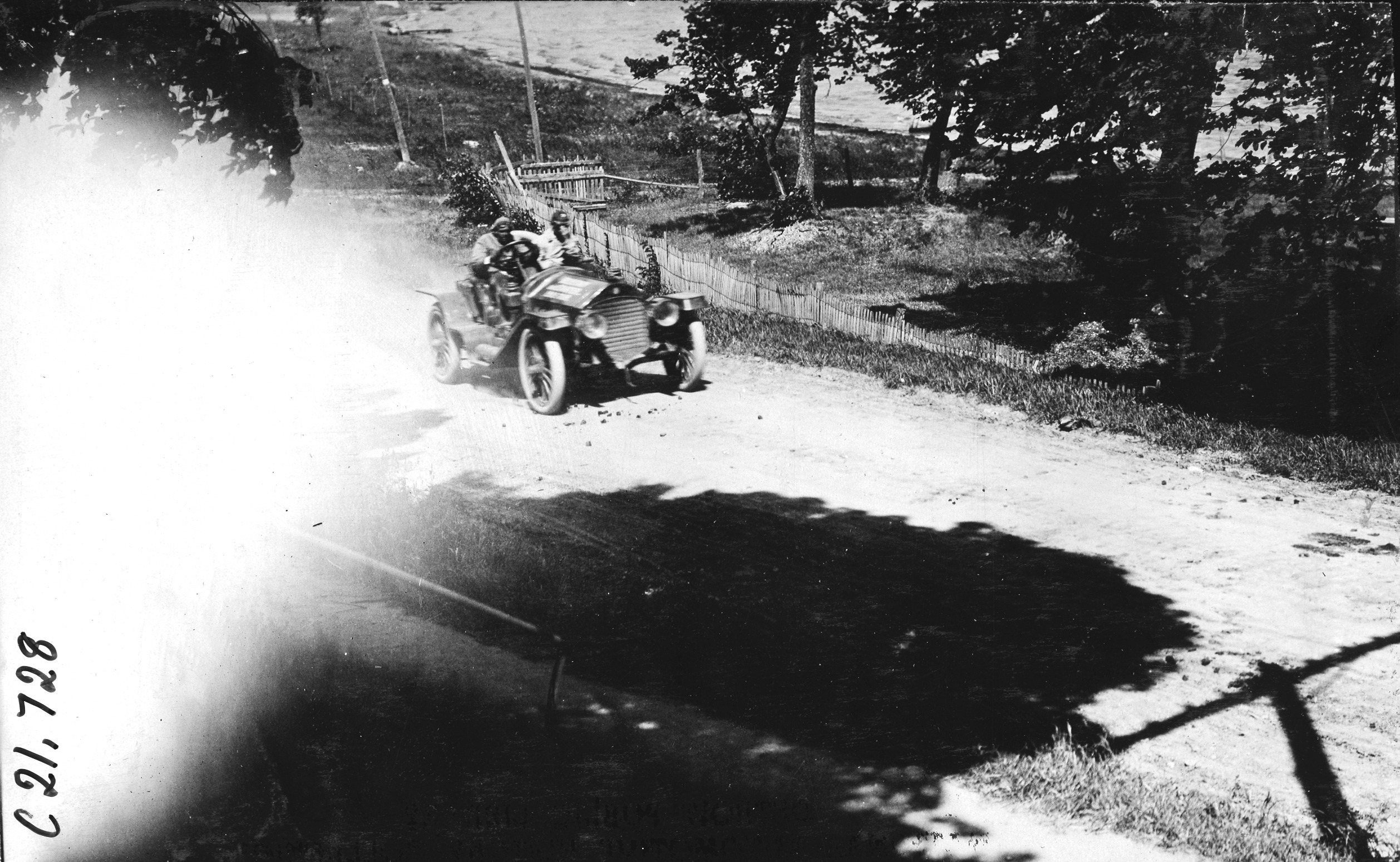 Ferguson on turn at Madison Lake, Minn., at 1909 Glidden Tour