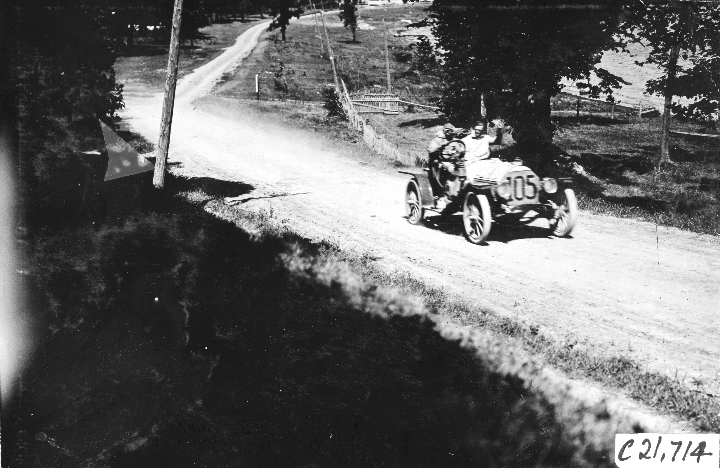 John Machesky in Chalmers car near Madison Lake, Minn., at 1909 Glidden Tour