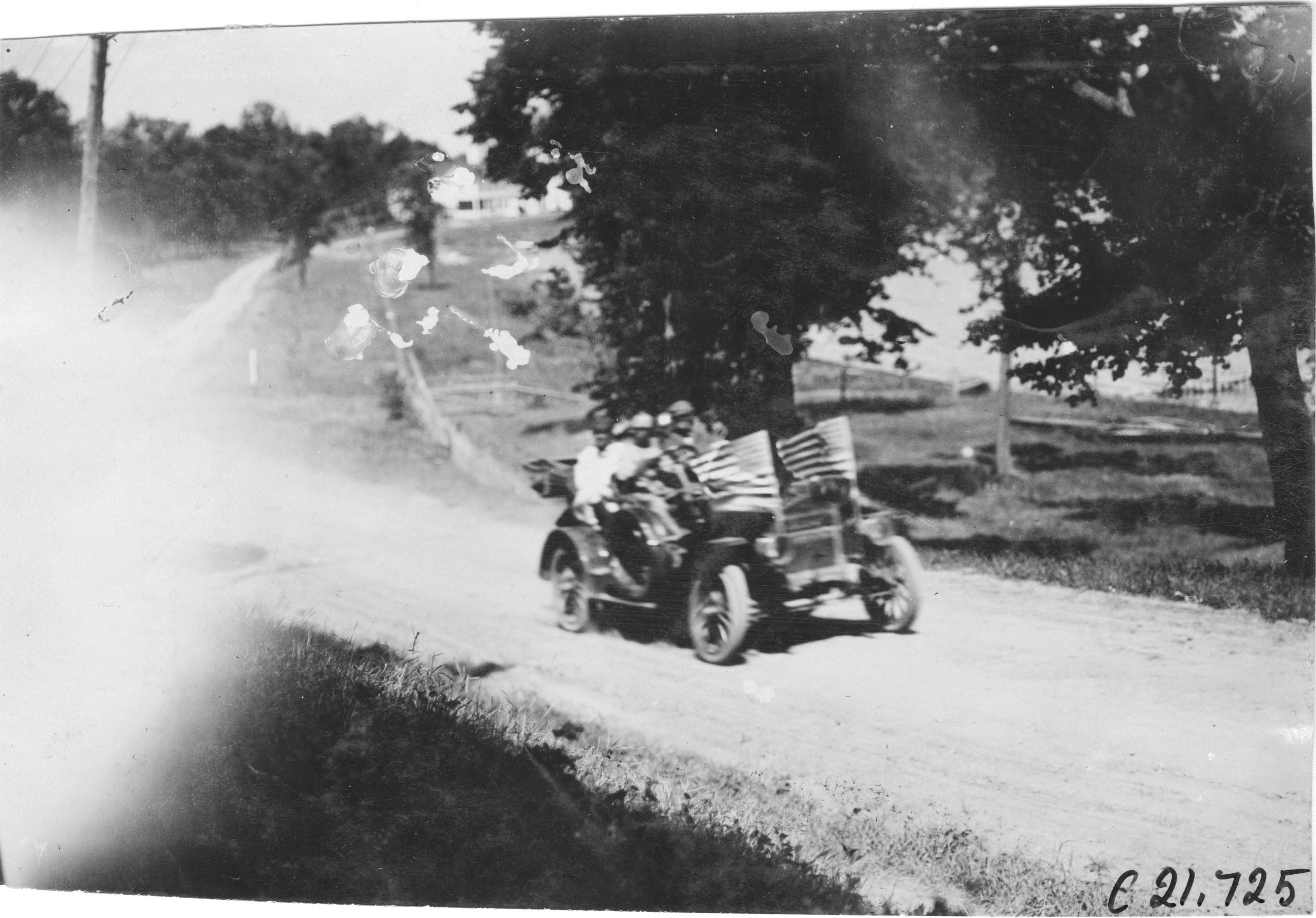 Illingsworth in car #82 nearing Mankato, Minn., at 1909 Glidden Tour