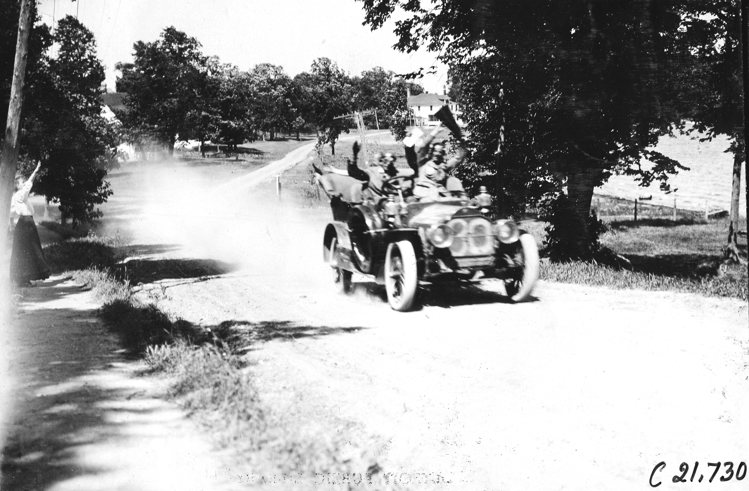 Dan McIntosh in Studebaker car nearing Mankato, Minn., at 1909 Glidden Tour