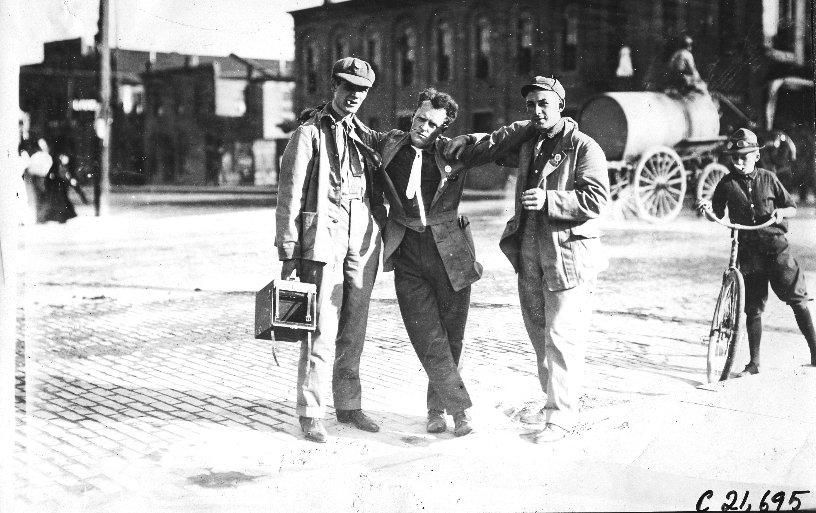Three Glidden participants in Mankato, Minn., at the 1909 Glidden Tour
