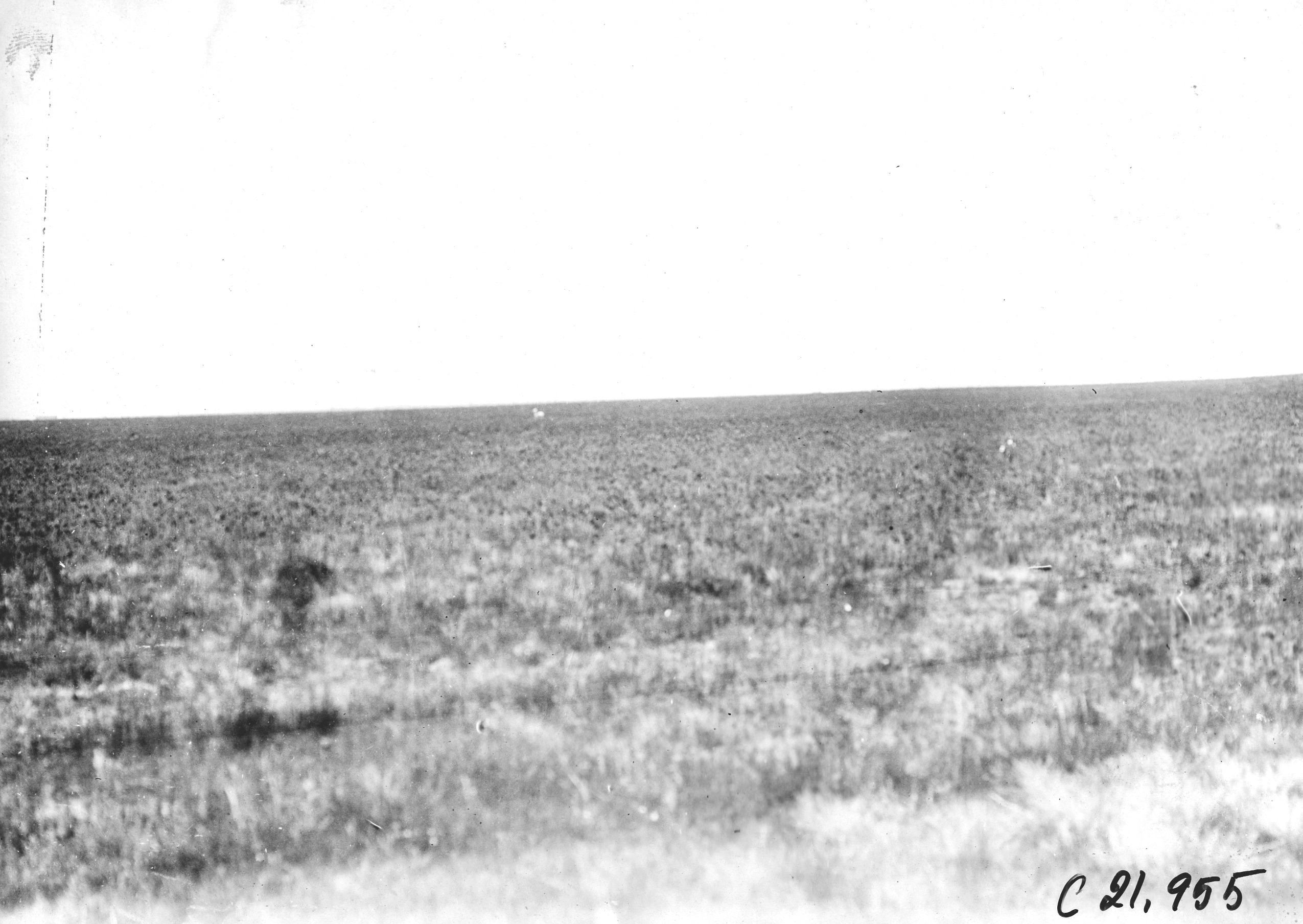 4.5x6.5 black and white photograph of Iowa prairie. Caption on photo back: '60 miles of prairie,' at the 1909 Glidden Tour. Negative #C21,955.