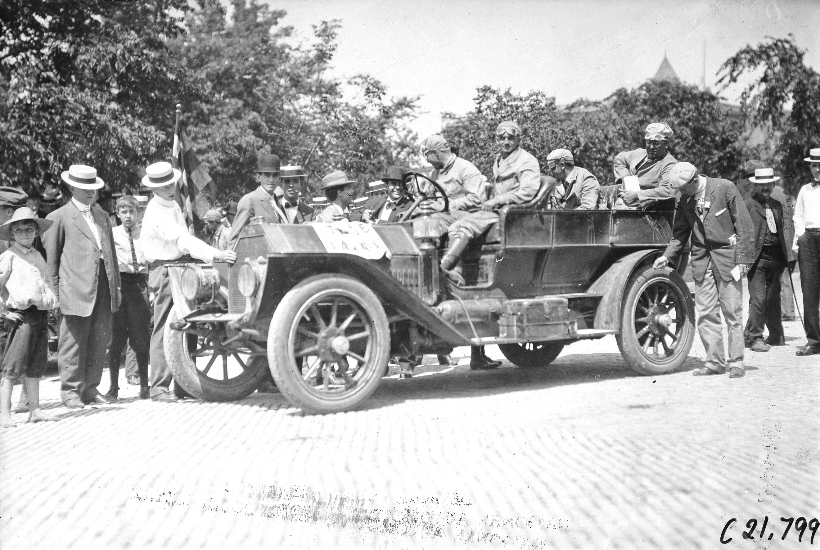 A.Y. Bartholomew in Glide car #10 arriving at Ft. Dodge, Iowa at the 1909 Glidden Tour