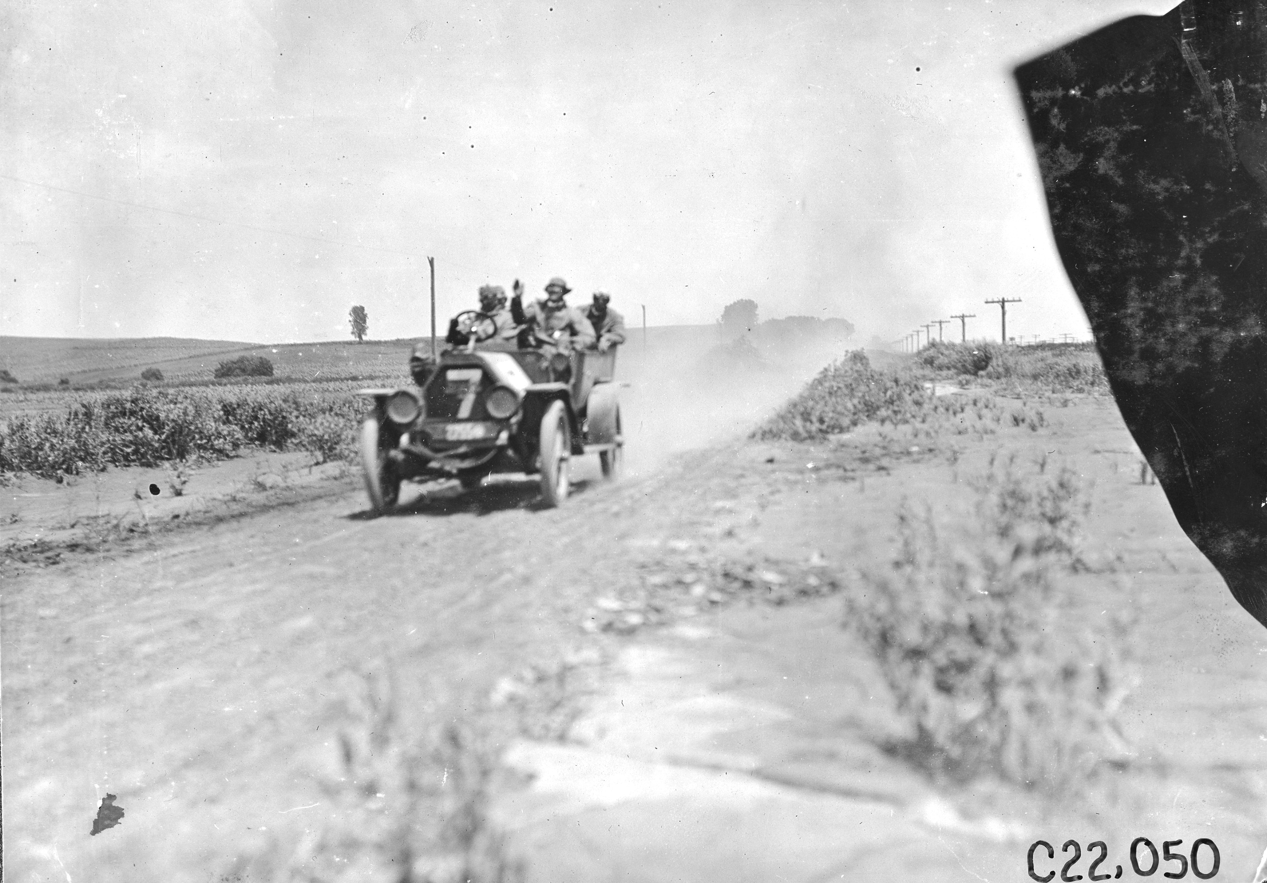 O.H. Bernhardt in Jewell car on rural road near Arion, Iowa at the 1909 Glidden Tour