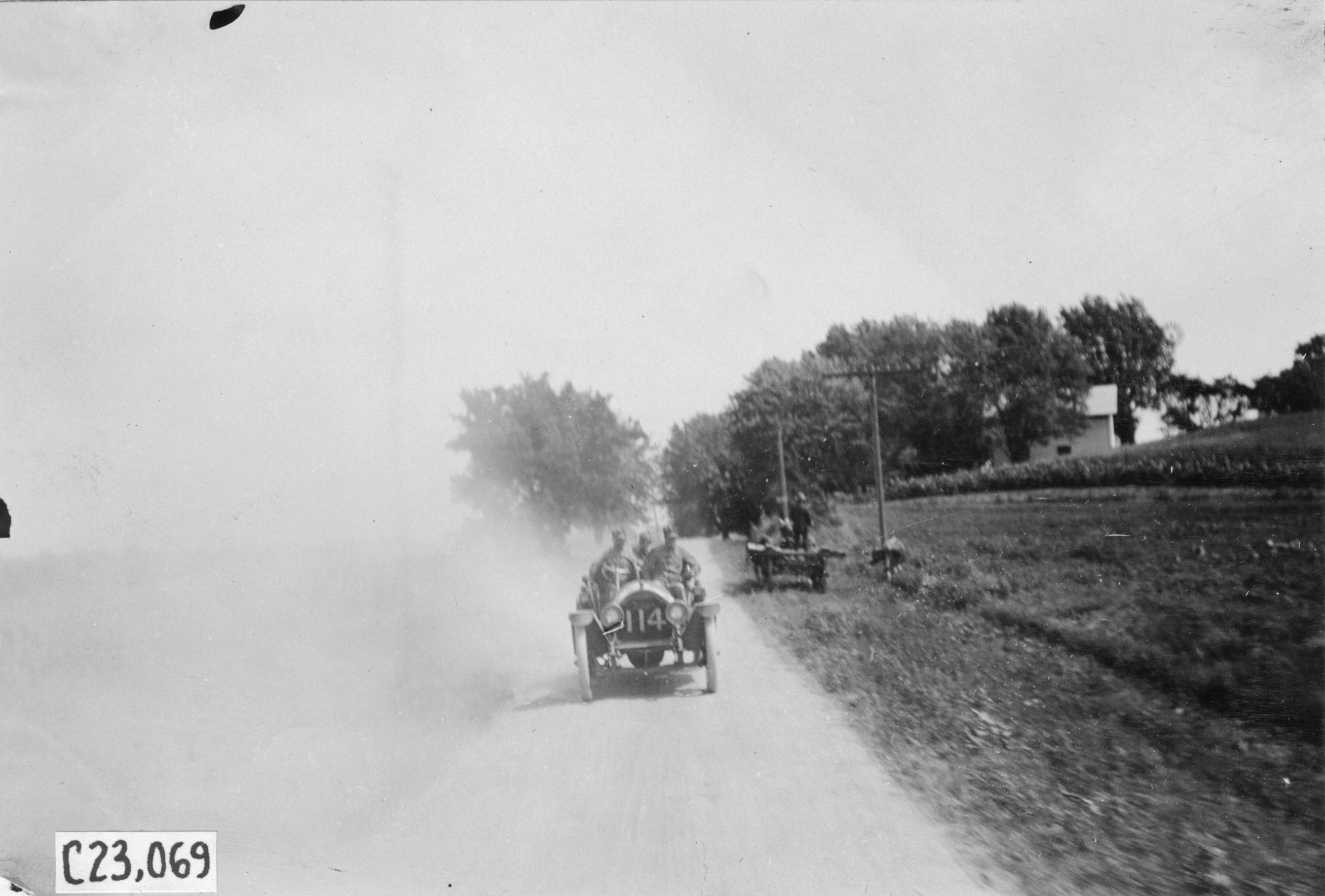 Car #114 on rural road to Council Bluffs, Iowa at 1909 Glidden Tour