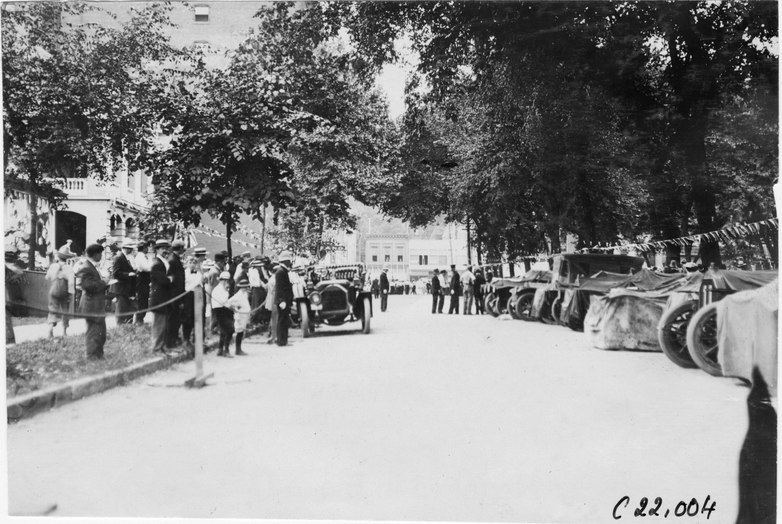 Glidden tourist cars parked along street at Council Bluffs, Iowa at 1909 Glidden Tour