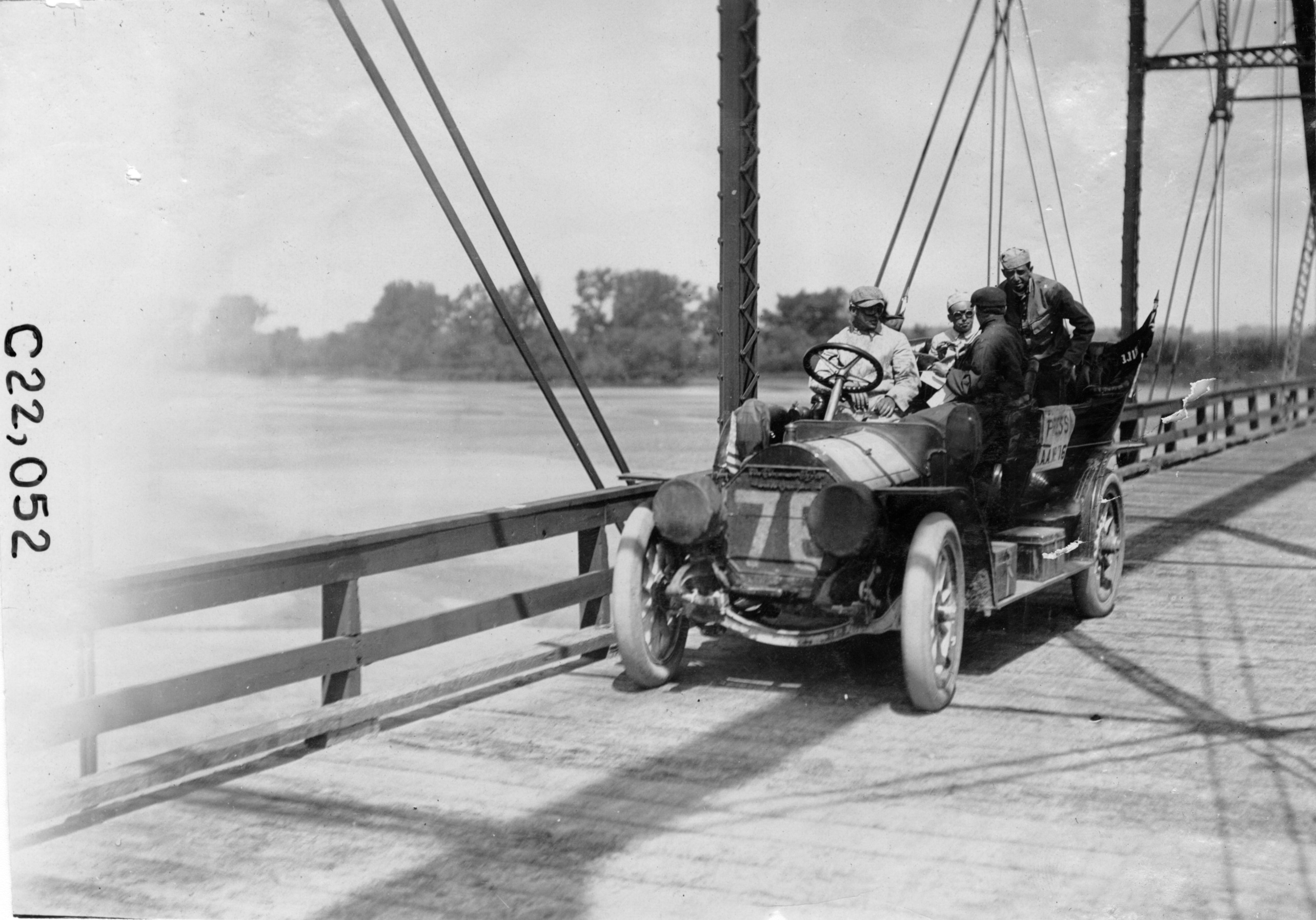 Thomas car #76 on Loup River bridge, at the 1909 Glidden Tour