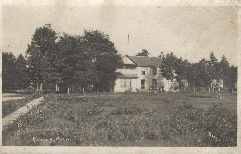 Black and white postcard of Chapelle home, Alden, Michigan, ca. 1920