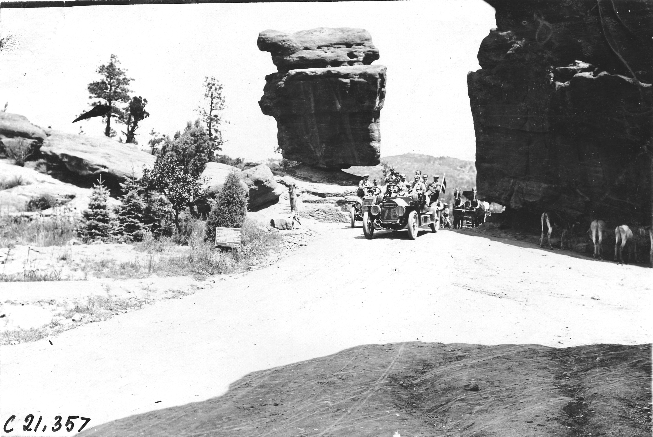 Chalmers cars at Balanced Rock in the Garden of the Gods, Colo., at the 1909 Glidden Tour