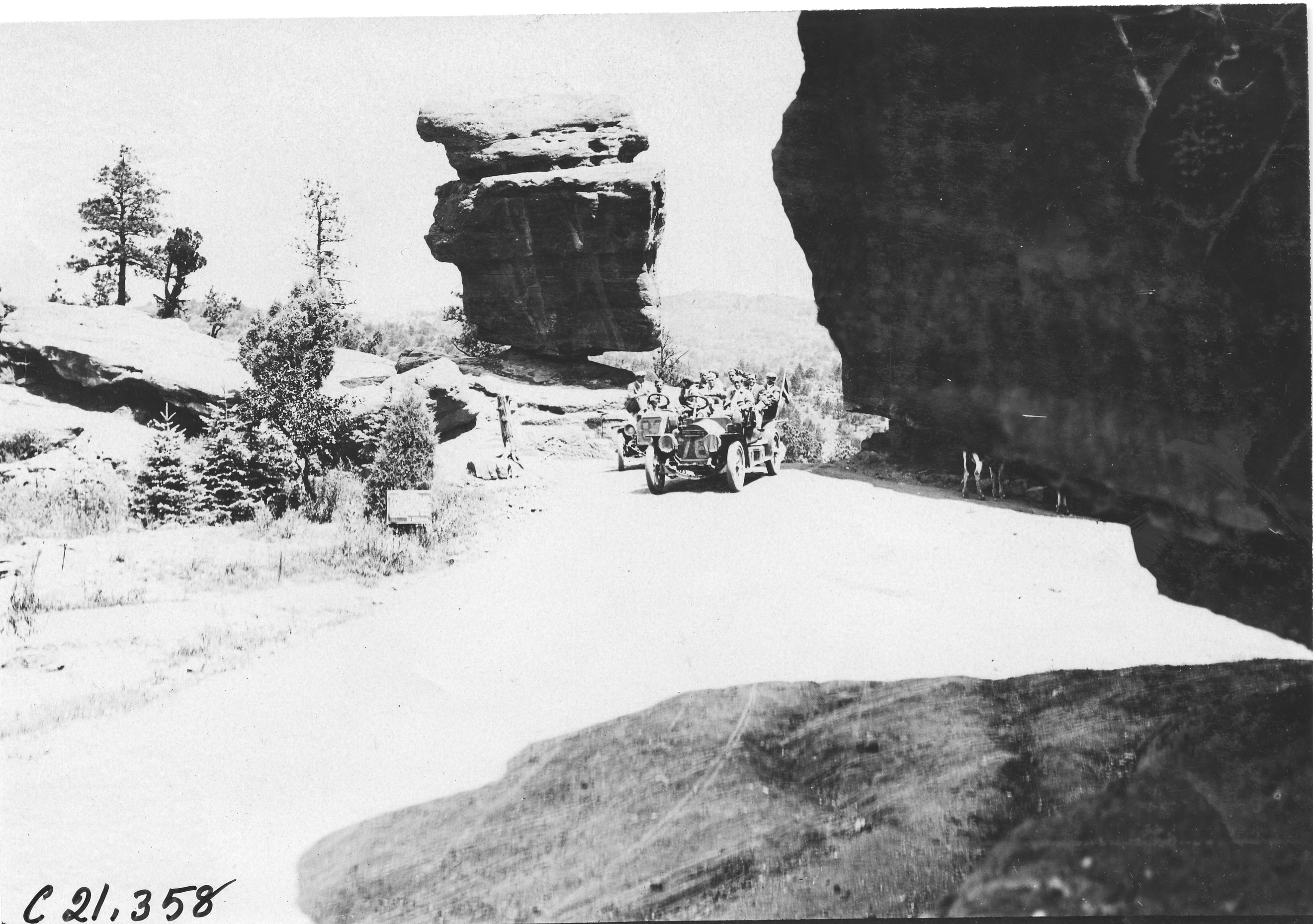 Chalmers cars at Balanced Rock in the Garden of the Gods, Colo., at the 1909 Glidden Tour