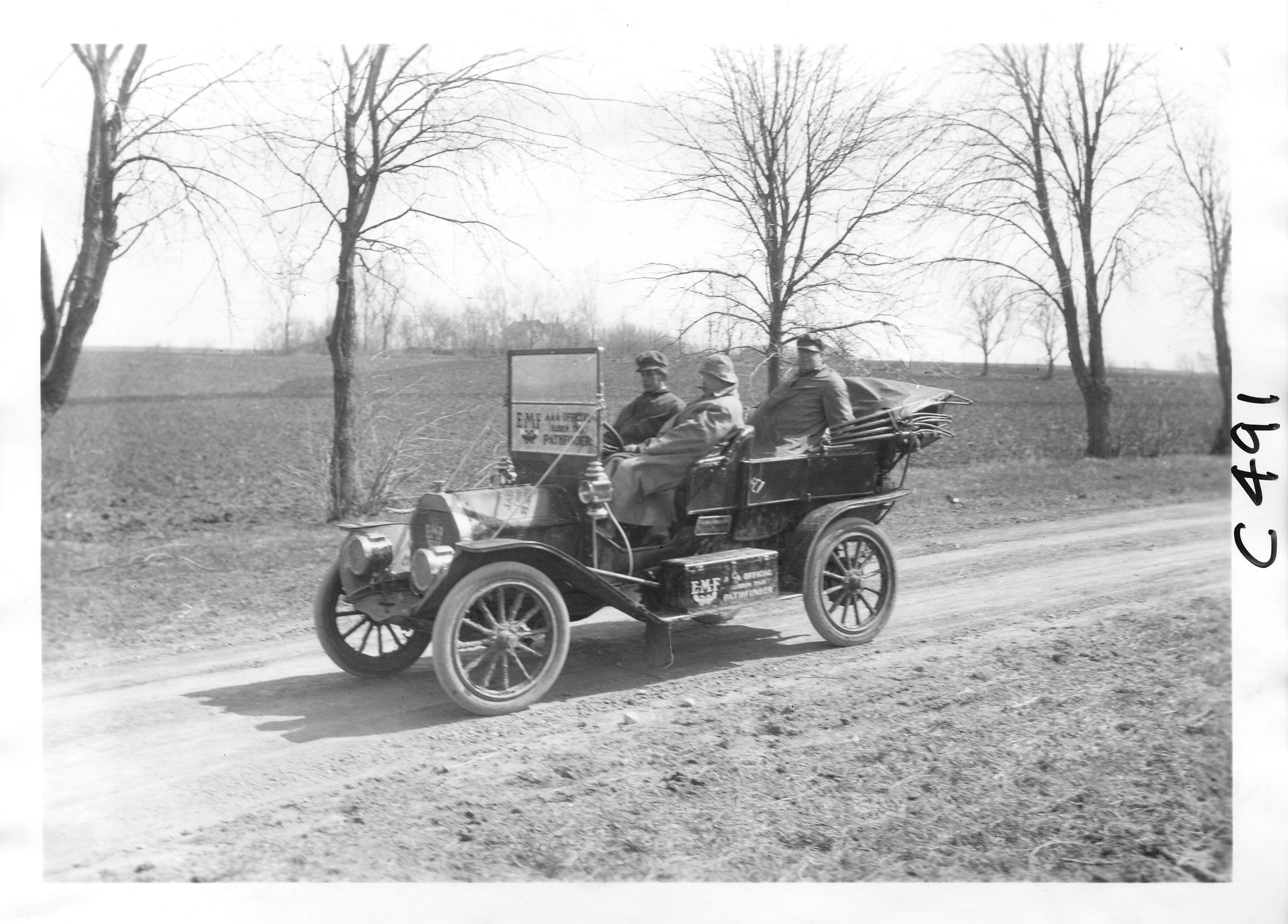 E.M.F. car on rural road, on pathfinder tour for 1909 Glidden Tour