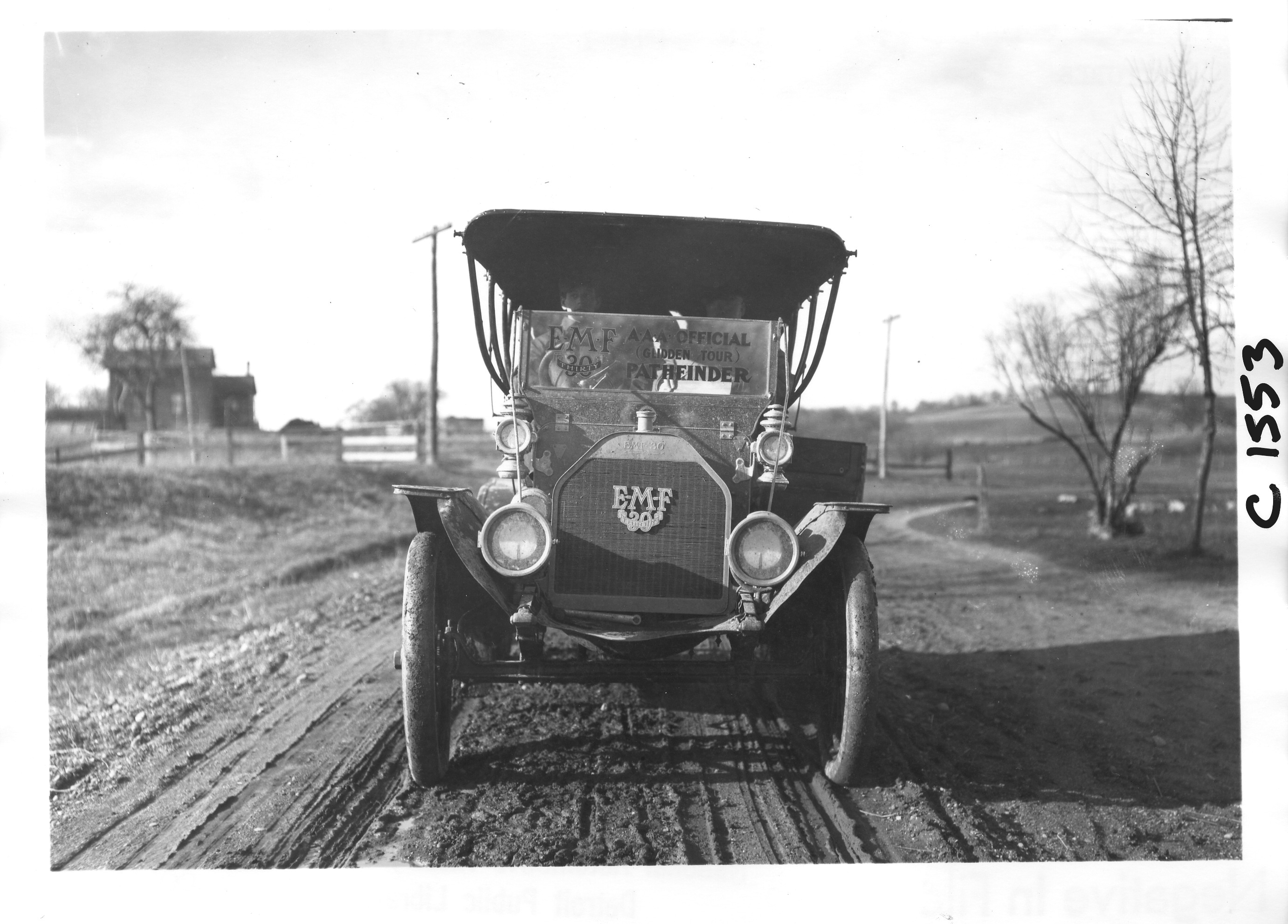E.M.F. car on rural road, on pathfinder tour for 1909 Glidden Tour