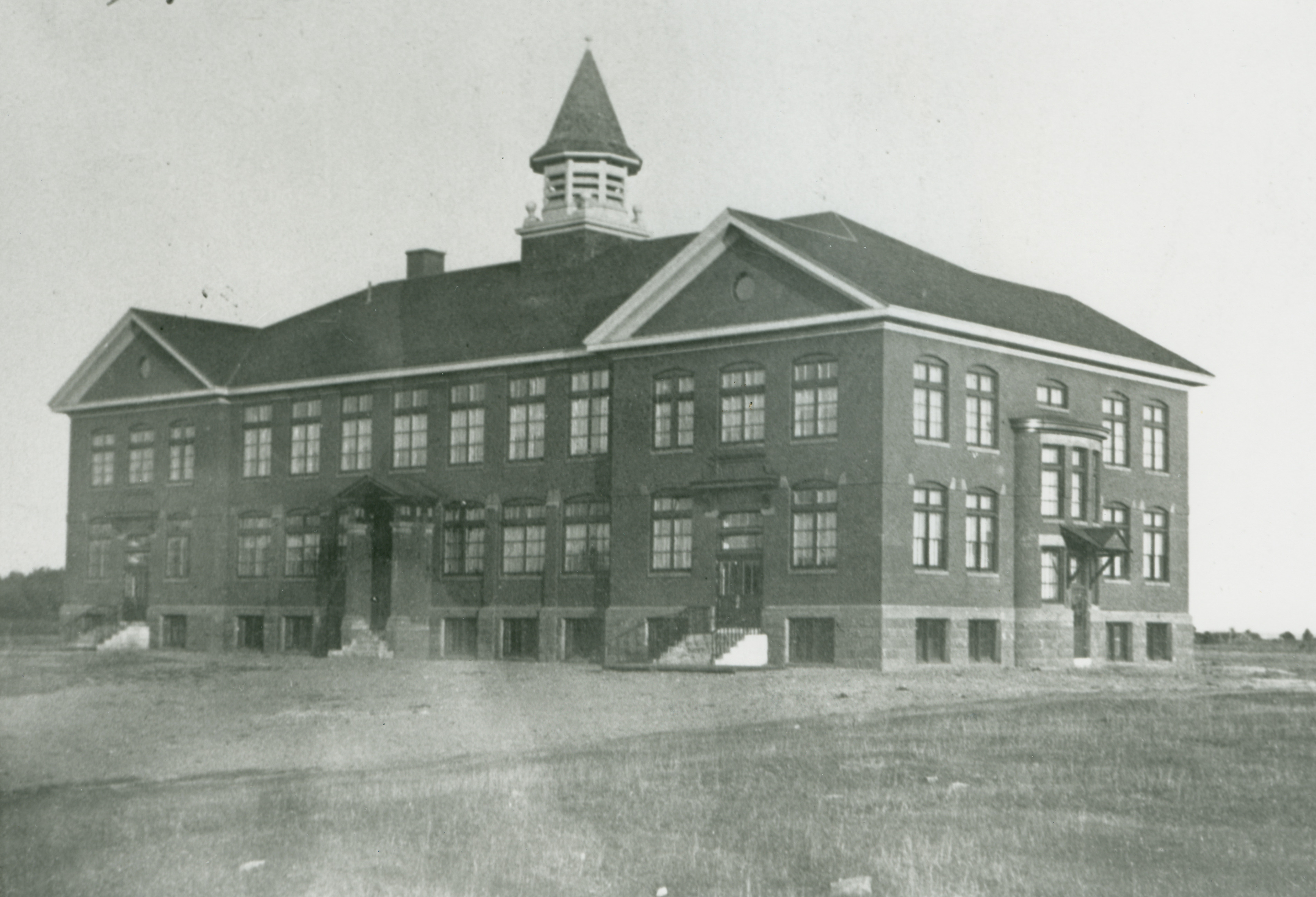 Photograph of Norway's new $40,000 high school in 1906. This school was totally destroyed by fire on August 28, 1912. The present Norway school complex is in the same location.