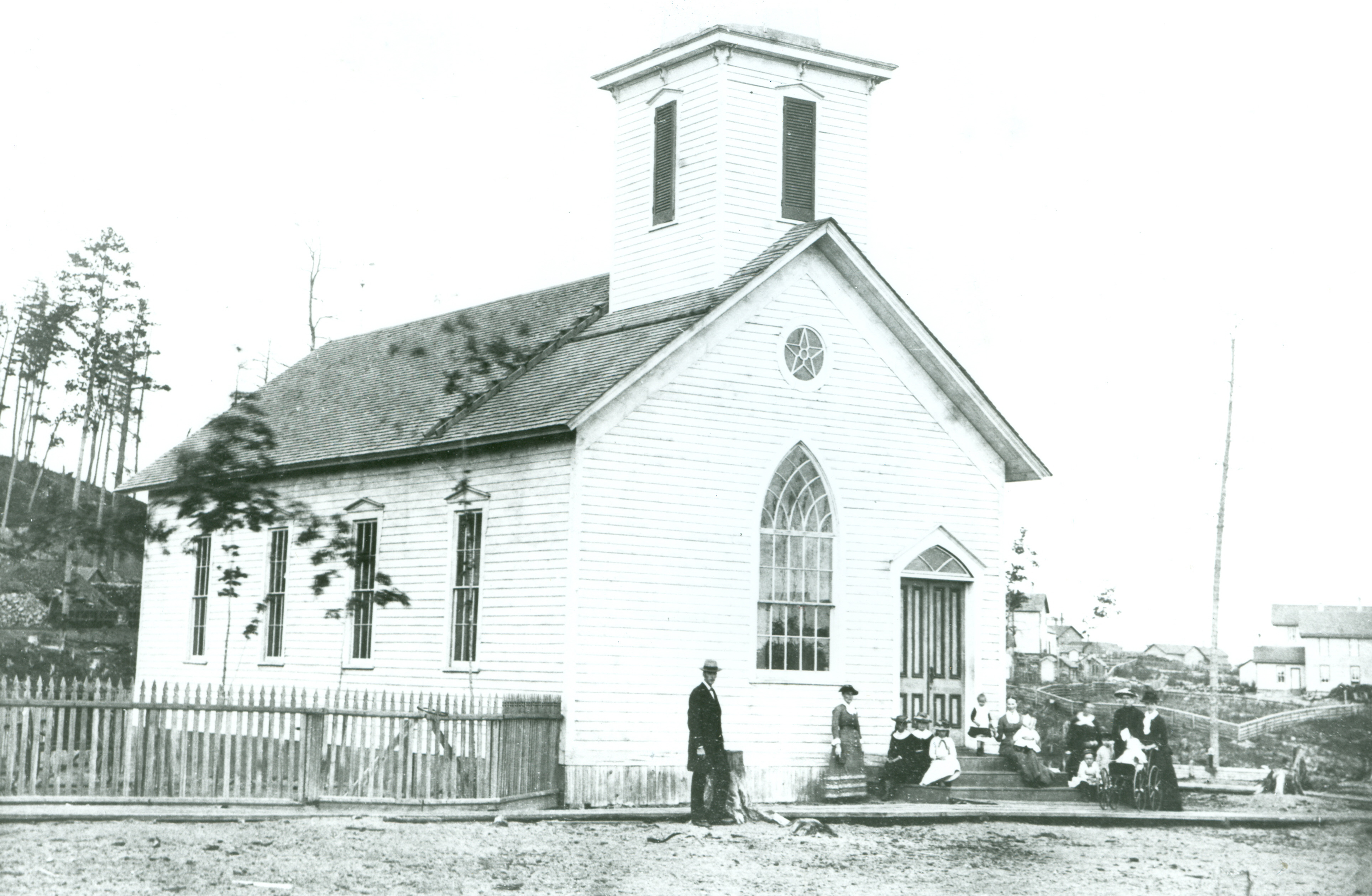 Photograph of Iron Mountain's Swedish Free Missionary Church, better known as the Swedish Mission Church, was founded in August, 1882. This building was purchased by the Swedish Methodist Episcopal Church in 1892. Members of Iron Mountain's Jewish community purchased the church from the Swedish Methodists in 1909 and moved it to the corner of Kimberly Avenue and West 'A' Street for worship purposes where it remains today.