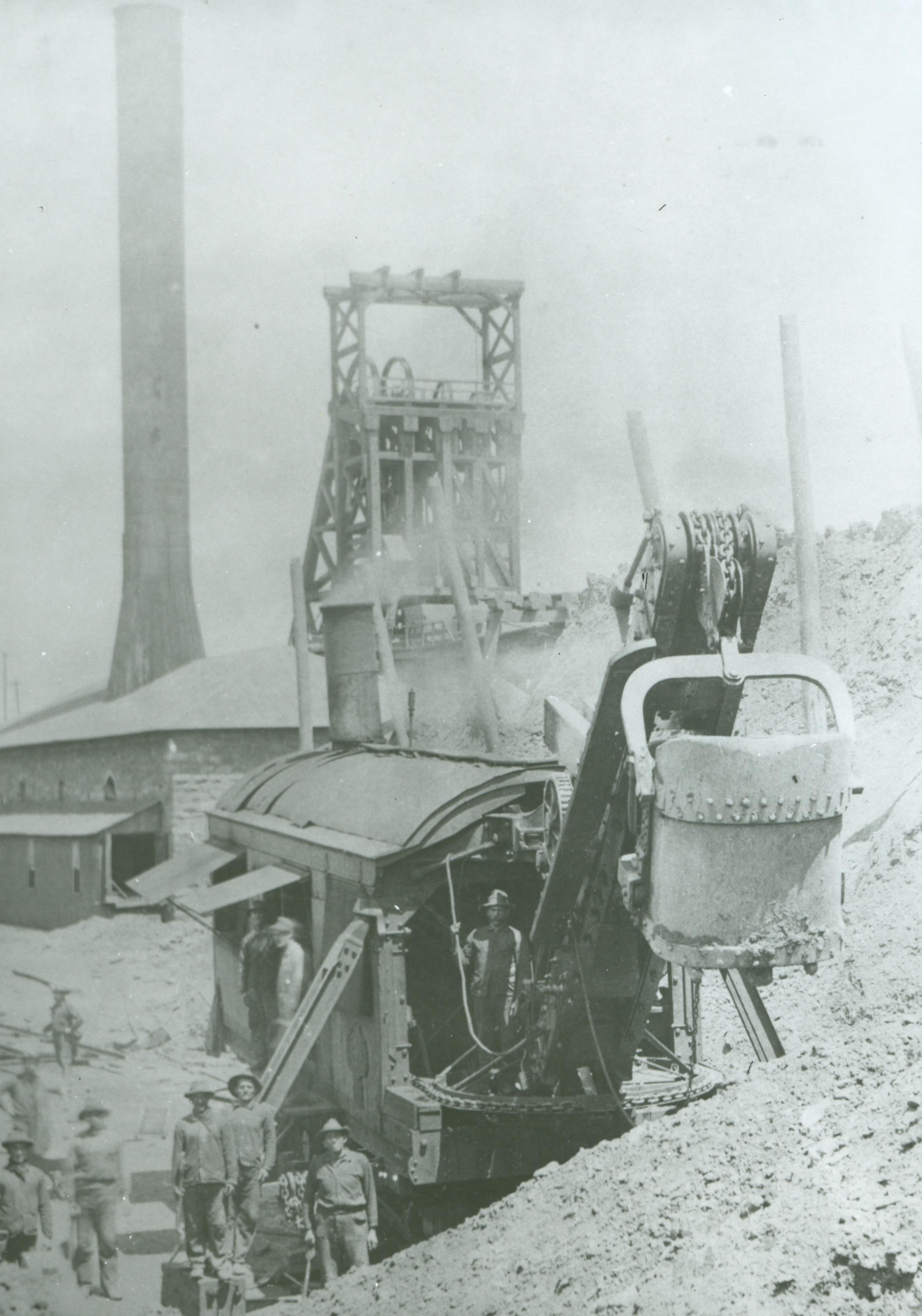Steam shovel and crew of the Hamilton Shaft of the Chapin Mine