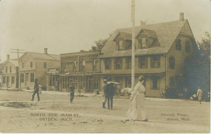 Black and white photograph of the Original Dryden Hotel, before in became the Exchange Hotel