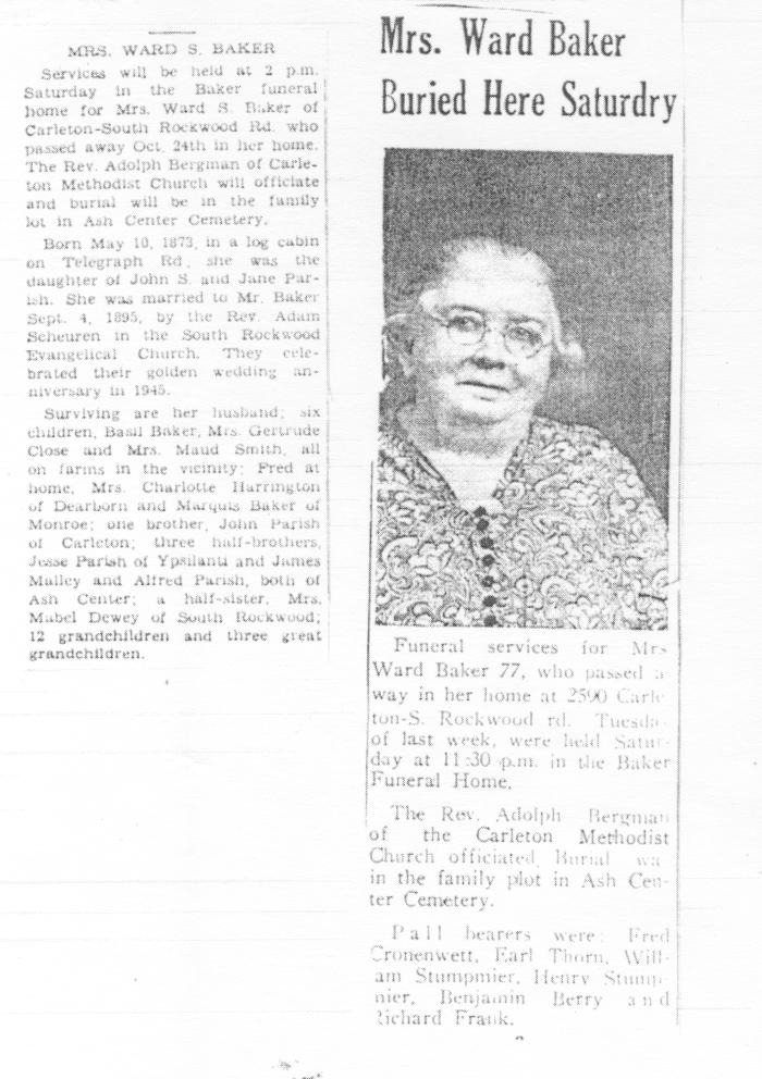 Obituary of Mrs. Ward Baker born May 10,1973 in Brownstown Township, Michigan. Resided in South Rockwood, Michigan.