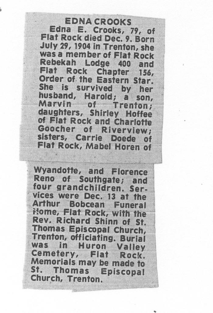 Obituary of Mrs. Brooks Ballantyne born June 19, 1916 in Detroit, Michigan. Resided in Flat Rock, Michigan.