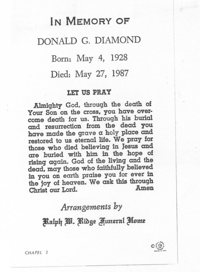 Obituary of Donald G. Dimaond born May 4, 1928.