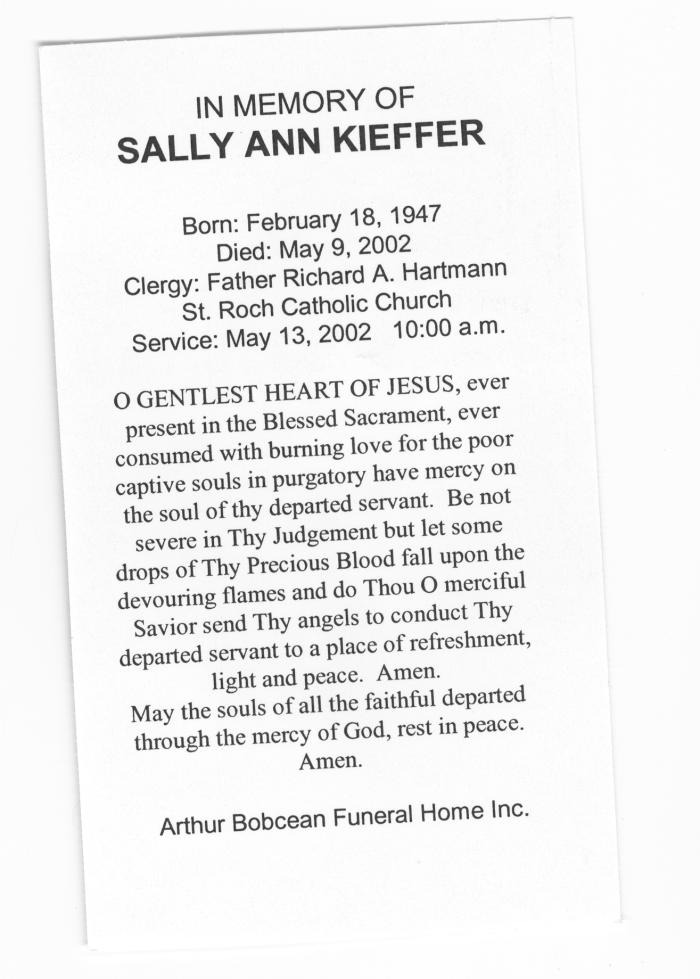 Obituary of Sally Ann Keiffer born Feb. 18, 1947.