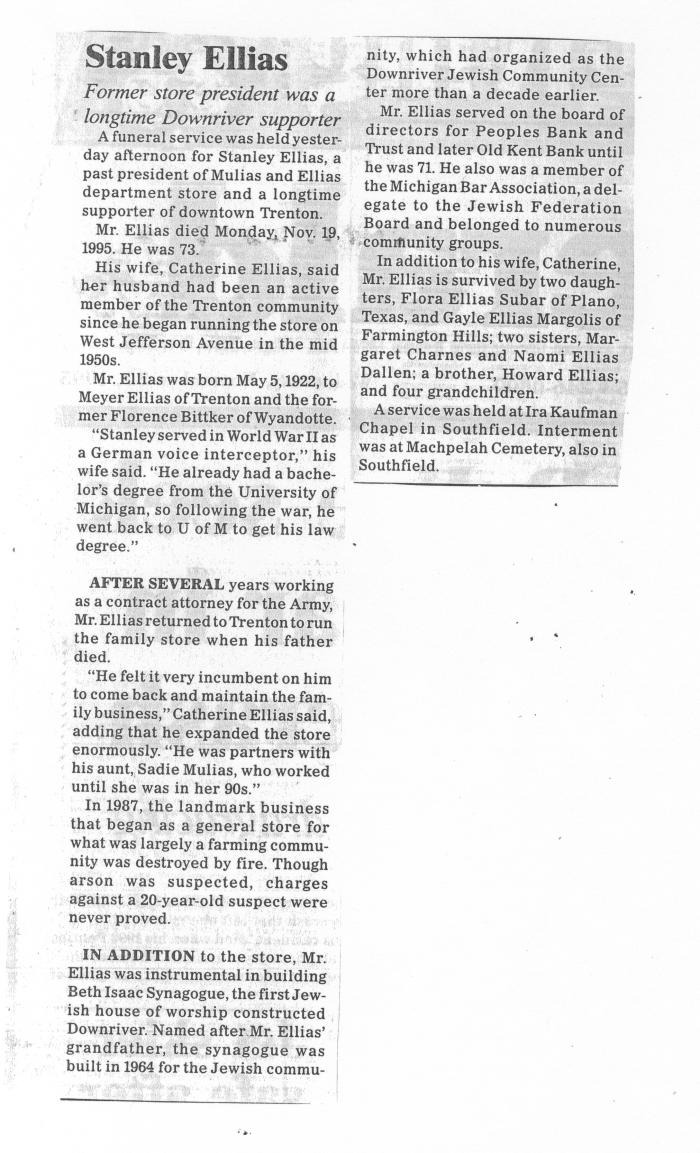 Obituary of Stanley Elias born May 5, 1922 in Trenton, Michigan. Resided in Trenton, Michigan.