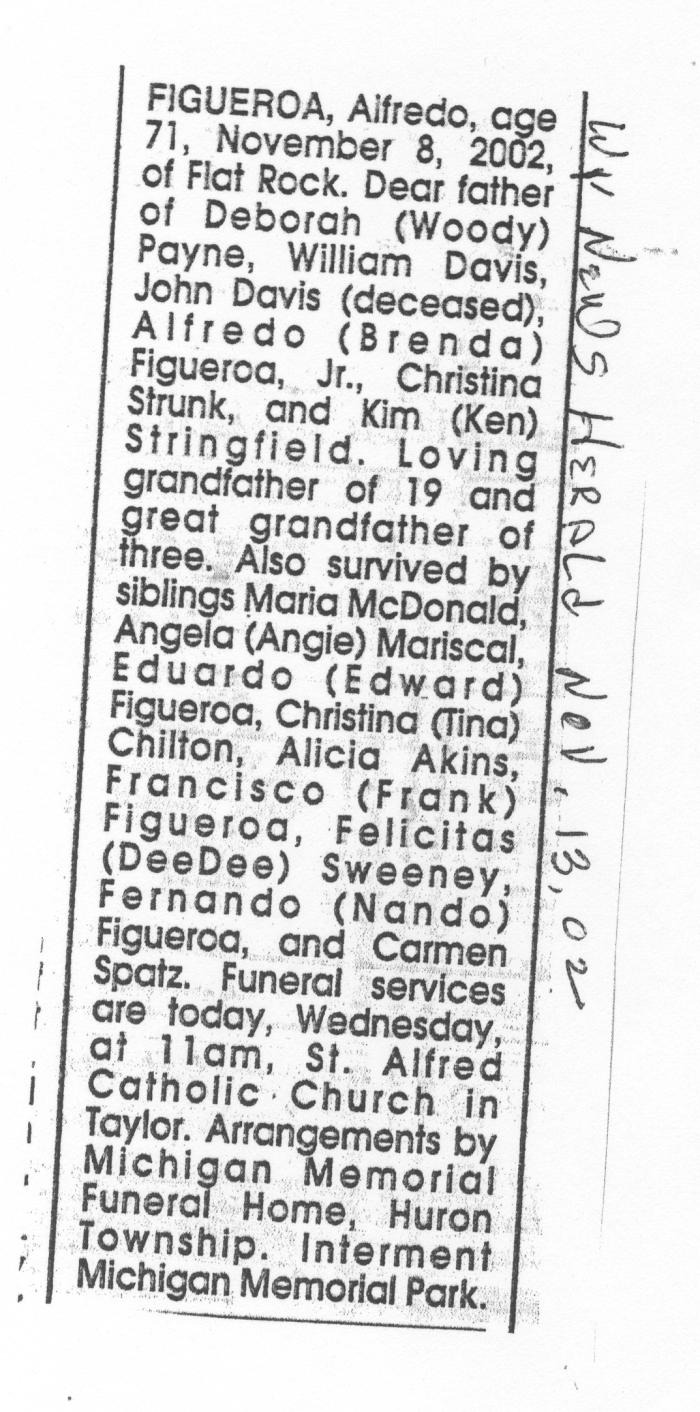 Obituary of Alfredo Figueroa age 71.