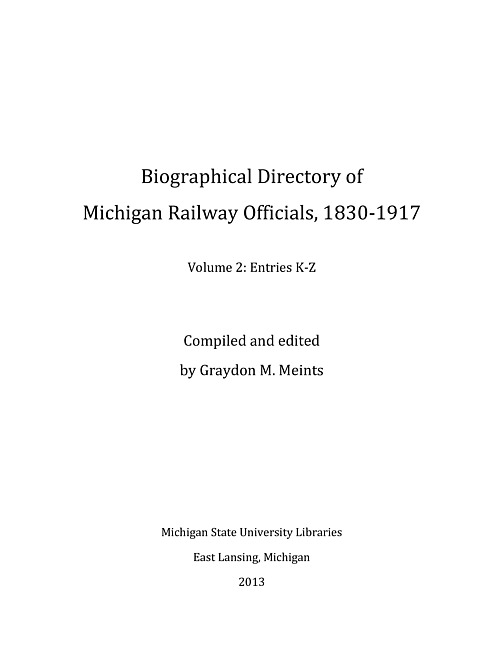 Biographical directory of Michigan railway officials, 1830-1917. Volume 2, Entries K-Z