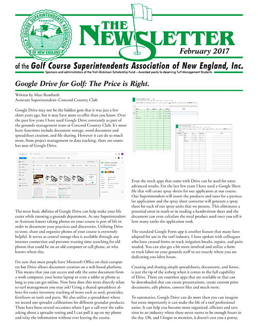 The newsletter of the Golf Course Superintendents Association of New England, Inc. (2017 February)