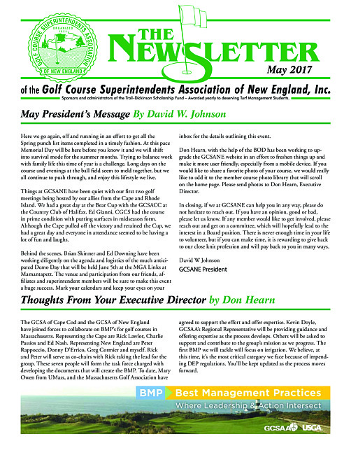 The newsletter of the Golf Course Superintendents Association of New England, Inc. (2017 May)