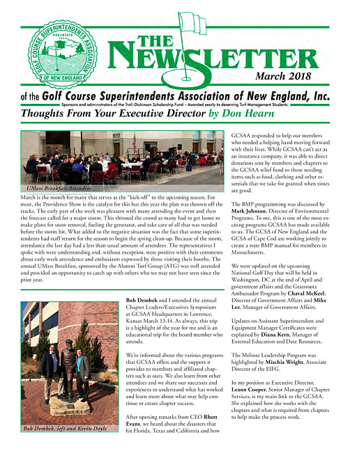 The newsletter of the Golf Course Superintendents Association of New England, Inc. (2018 March)