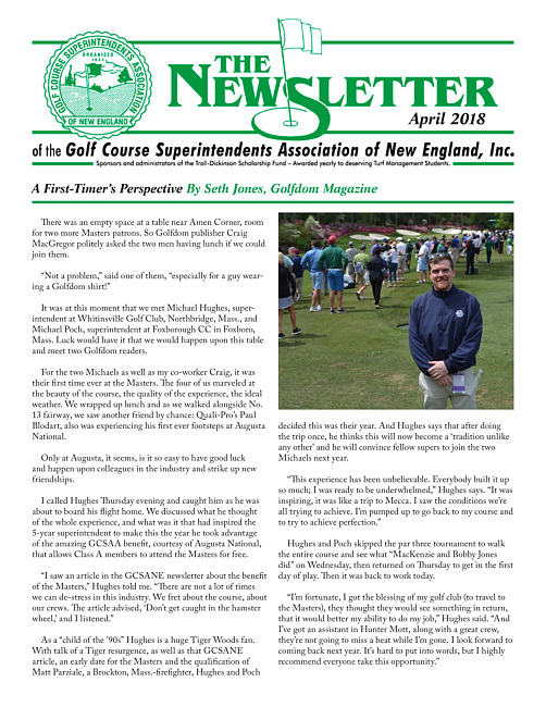 The newsletter of the Golf Course Superintendents Association of New England, Inc. (2018 April)