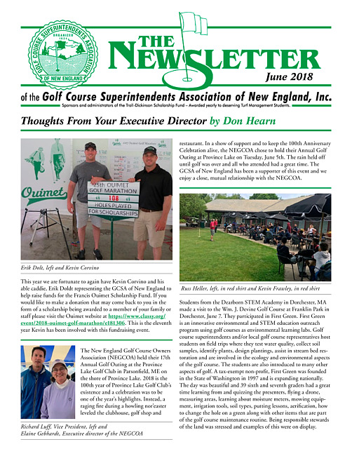 The newsletter of the Golf Course Superintendents Association of New England, Inc. (2018 June)