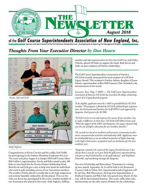 The newsletter of the Golf Course Superintendents Association of New England, Inc. (2018 August)