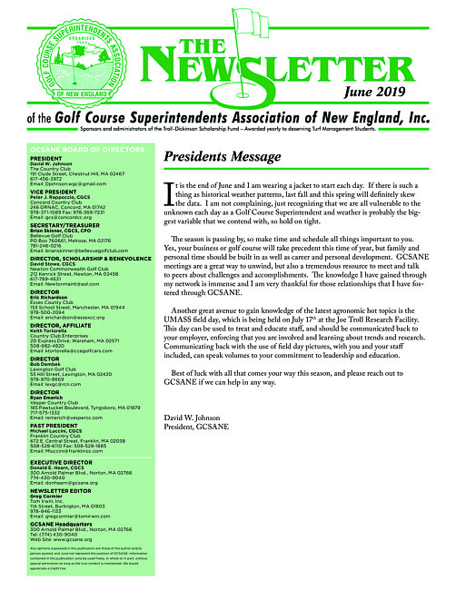 The newsletter of the Golf Course Superintendents Association of New England, Inc. (2019 June)