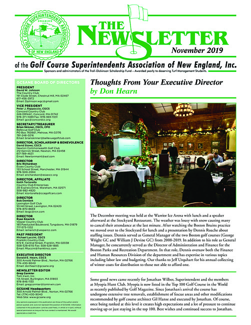 The newsletter of the Golf Course Superintendents Association of New England, Inc. (2019 December)