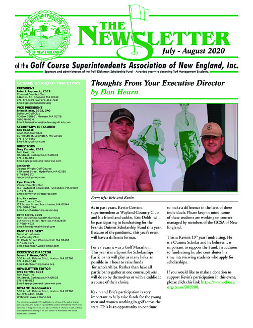 The newsletter of the Golf Course Superintendents Association of New England, Inc. (2020 July/August)