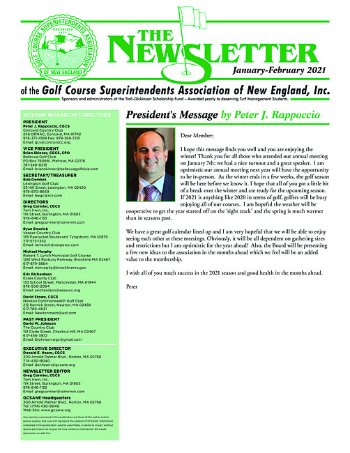 The newsletter of the Golf Course Superintendents Association of New England, Inc. (2021 January/February)
