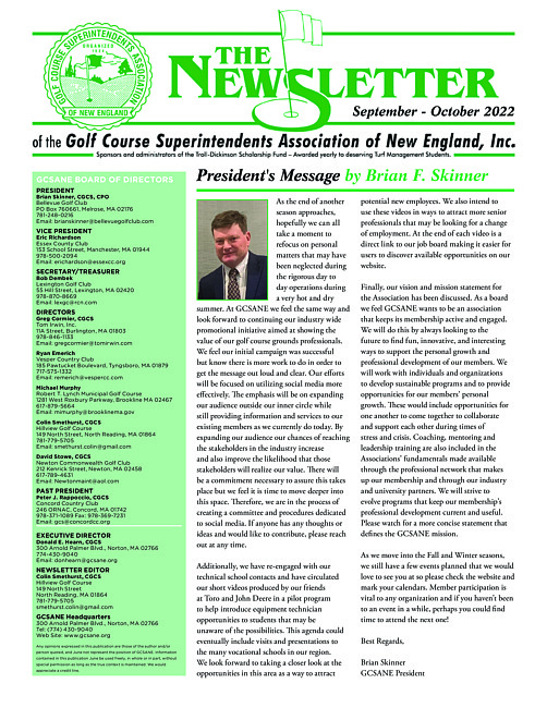 The newsletter of the Golf Course Superintendents Association of New England, Inc. (2022 September/October)