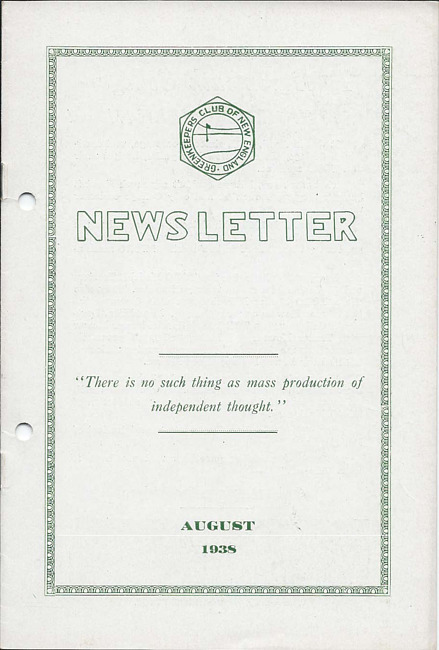 Newsletter. Vol. 10 no. 8 (1938 August)