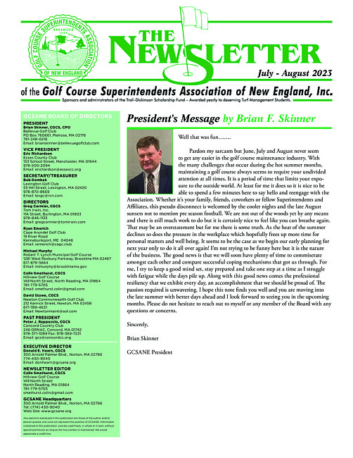 The newsletter of the Golf Course Superintendents Association of New England, Inc. (2023 July/August)